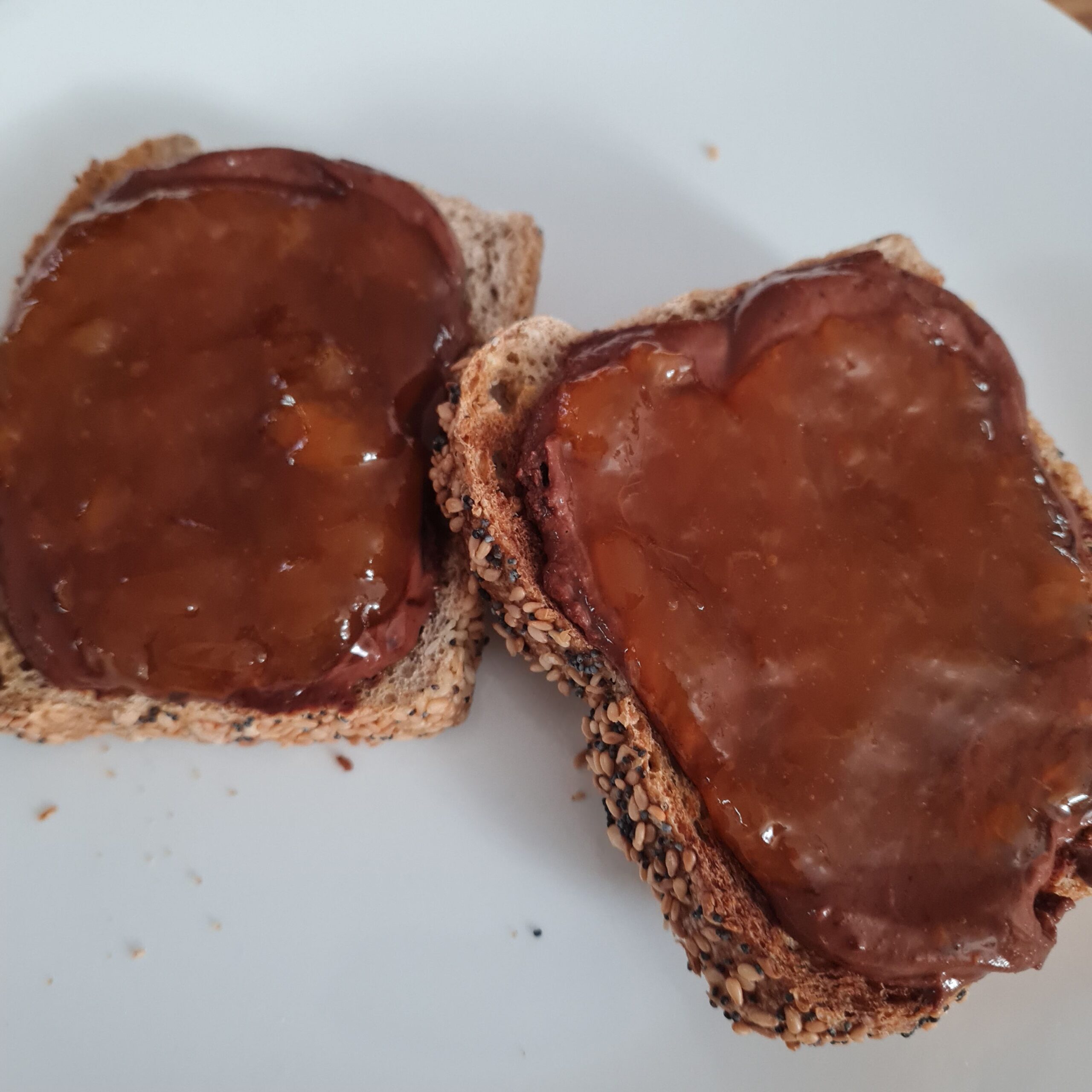 * sourdough multigrain toast w/ choco/peanut butter (from lowfat powder) & apricot preserves