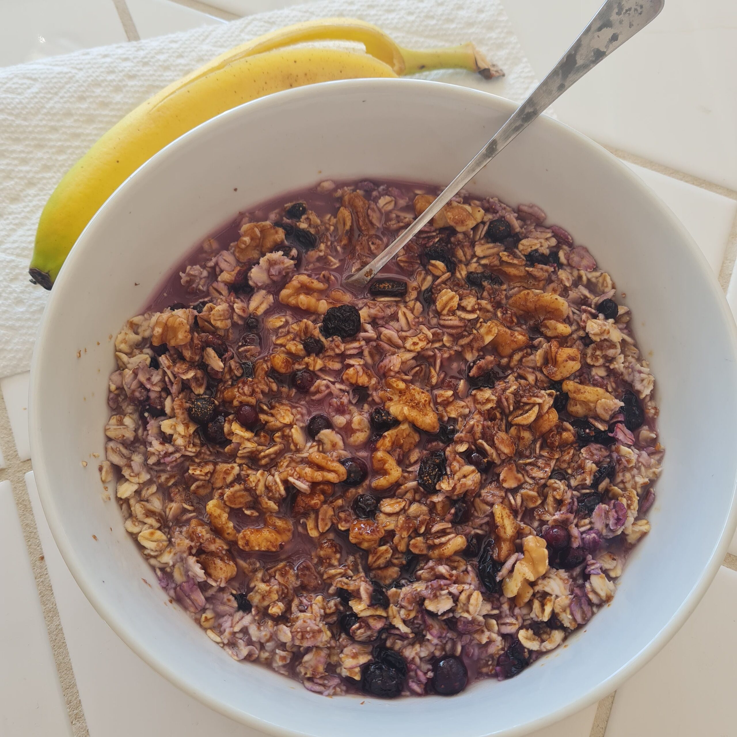 * oatmeal w/ blueberries, walnuts, banana & water