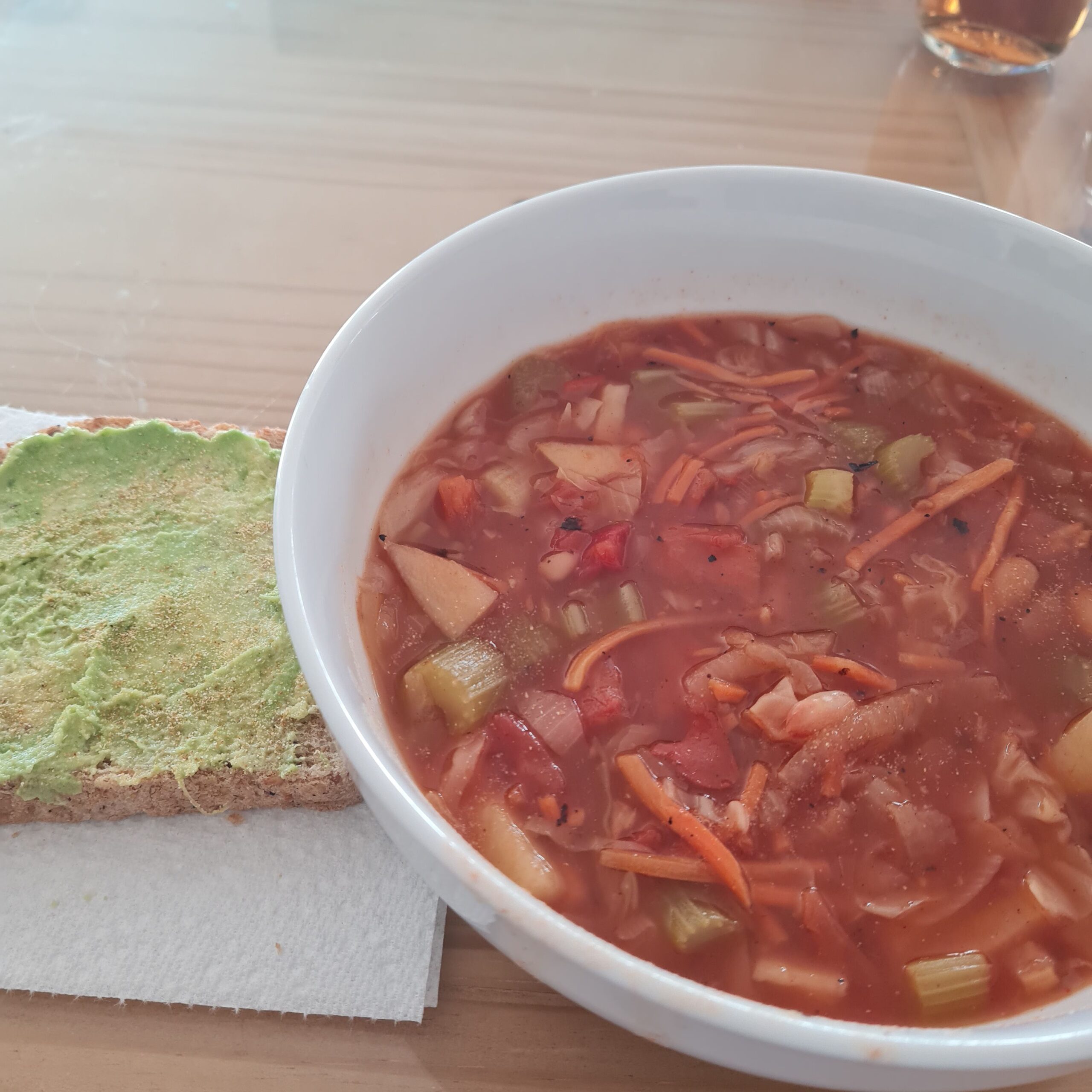 * two servings of old world veg-cabbage soup w/ avocado sourdough toast