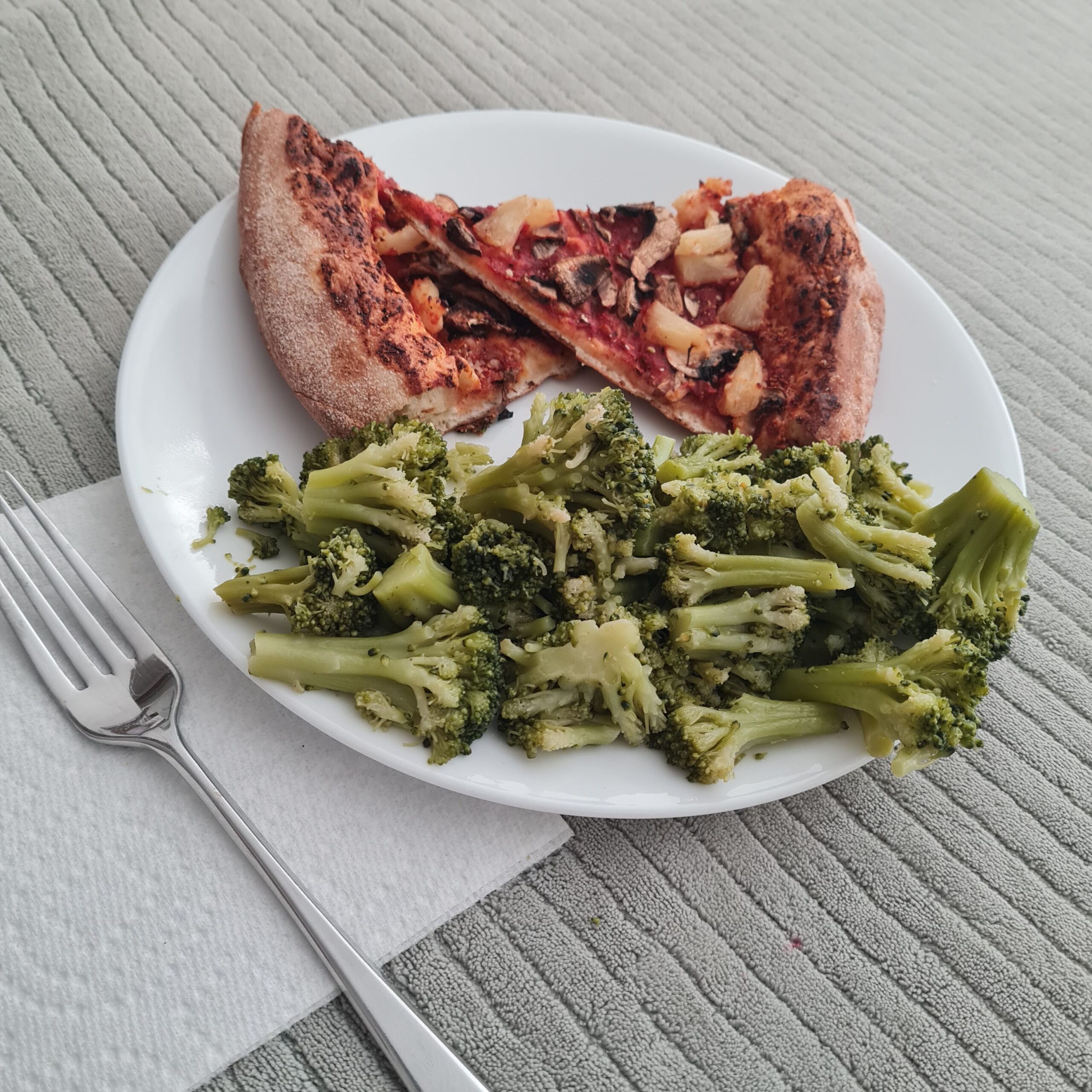 * leftover dairy-free pizza w/ lots of steamed broccoli