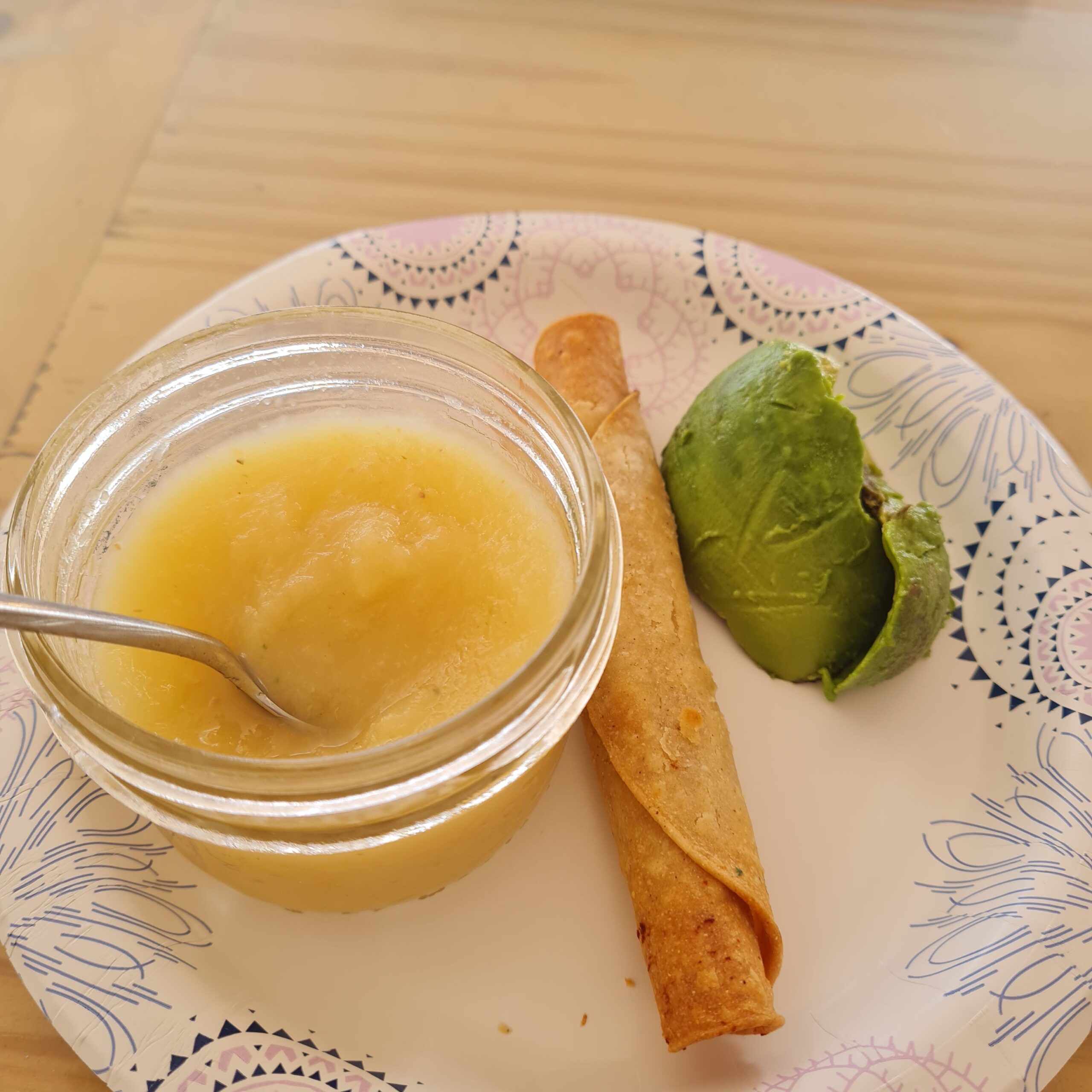 * applesauce, mushroom taquito & avocado, pistachios