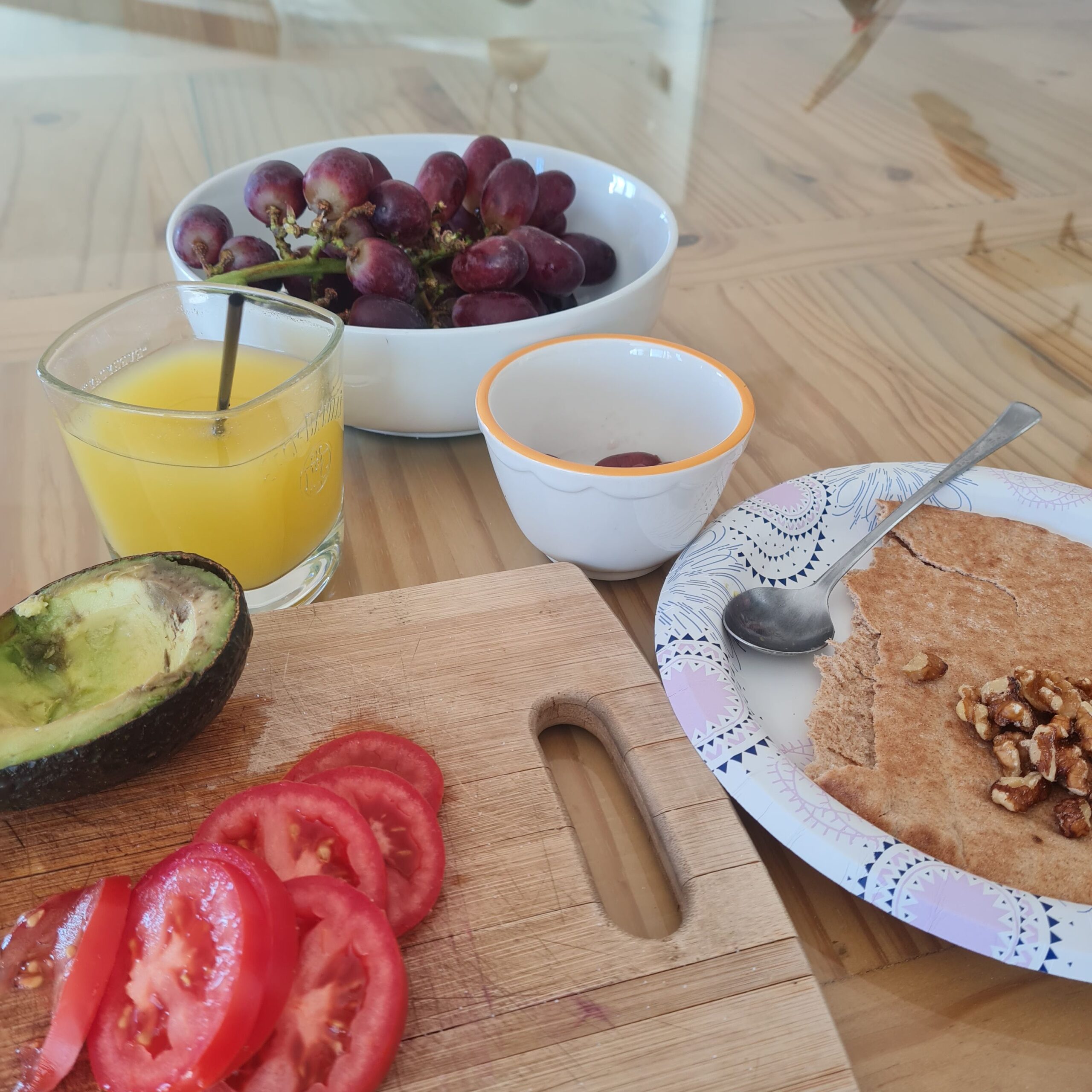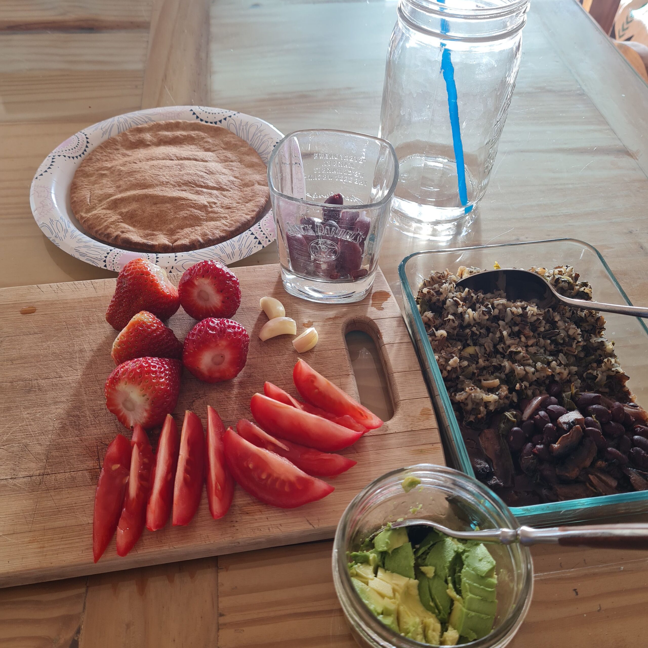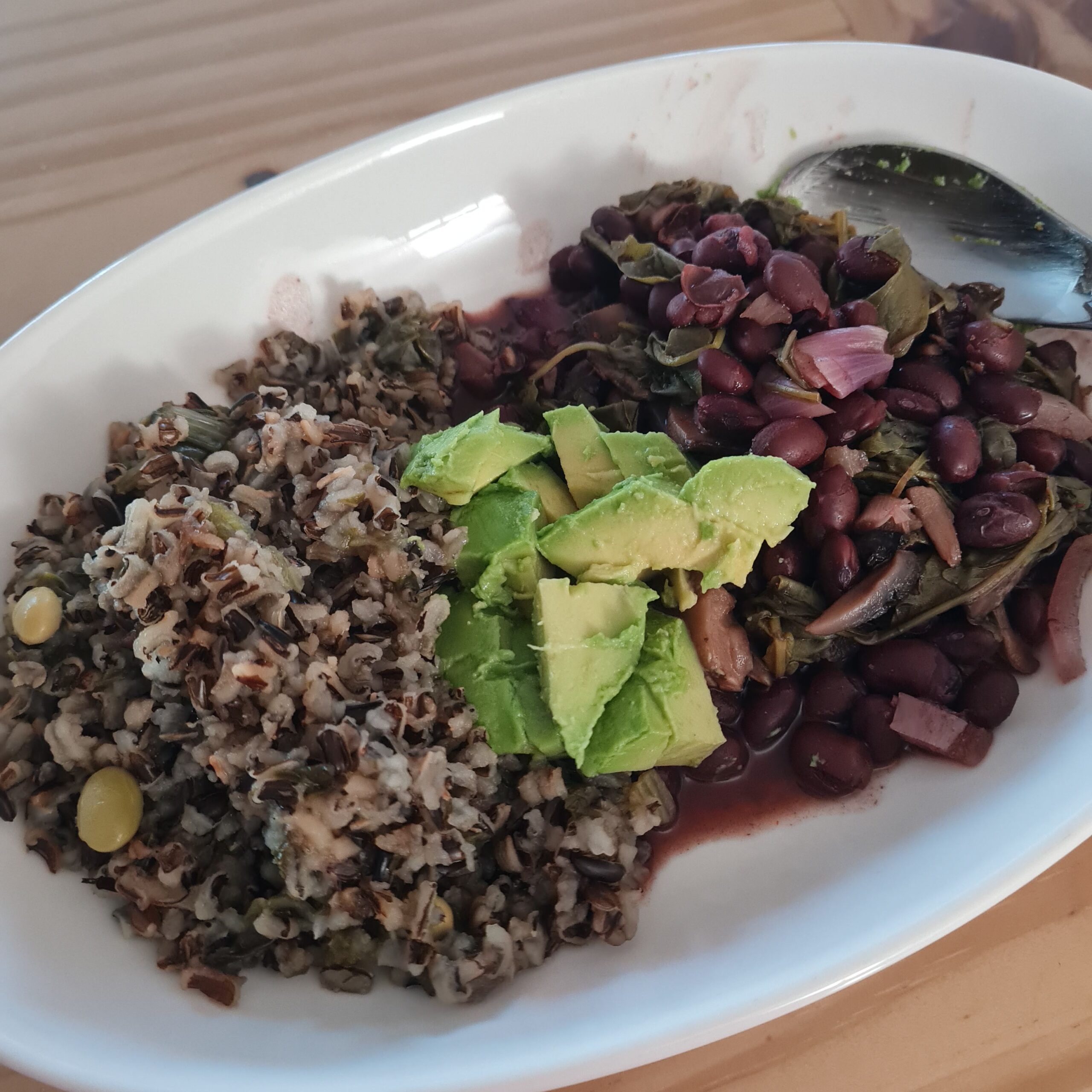* leftover Moroccan (grandmother) stew w/ wild rice & sauerkraut served w/ teff injera & 9 grain sourdough w/ avocado