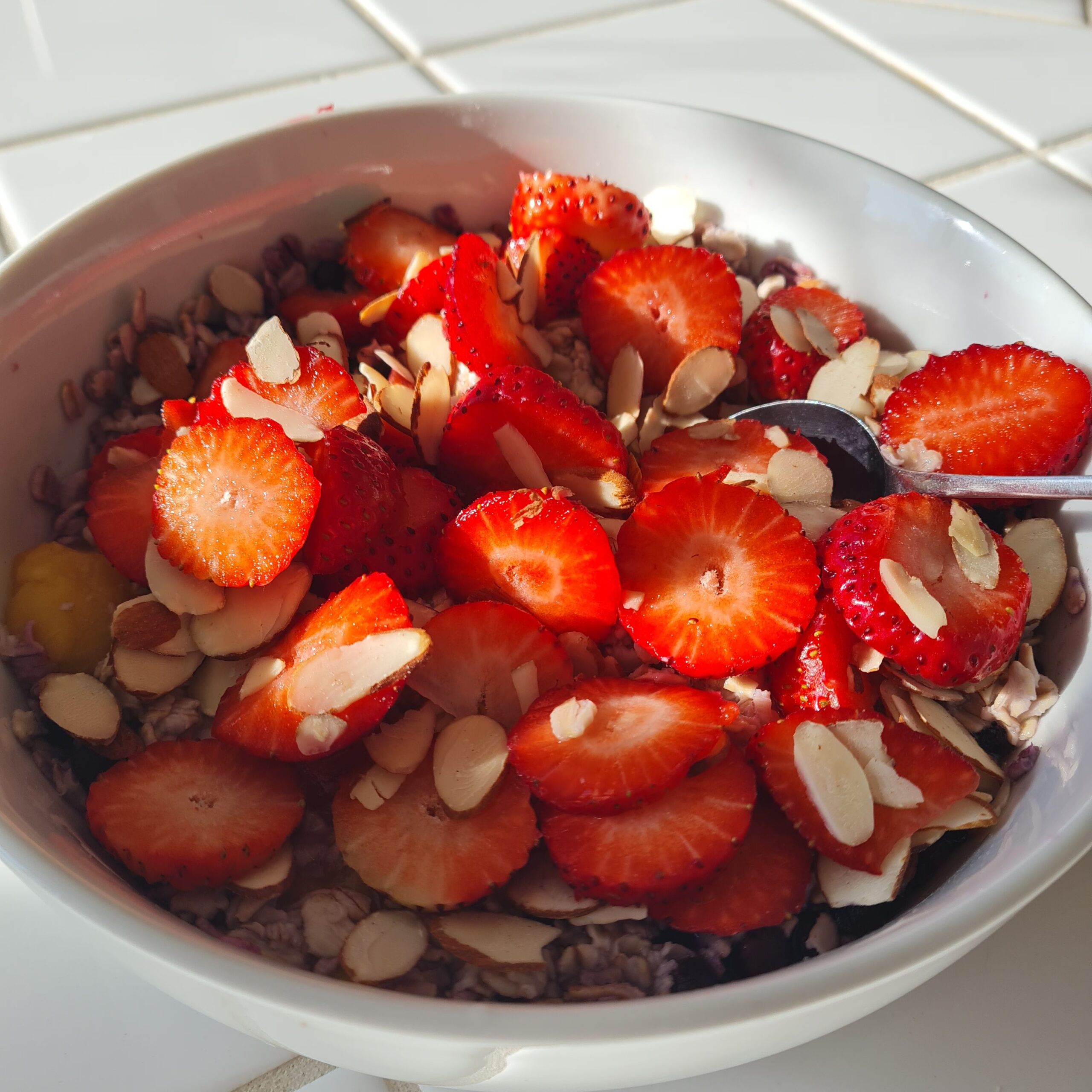 * oatmeal w/ blueberries, strawberries, mango, sliced almonds & water