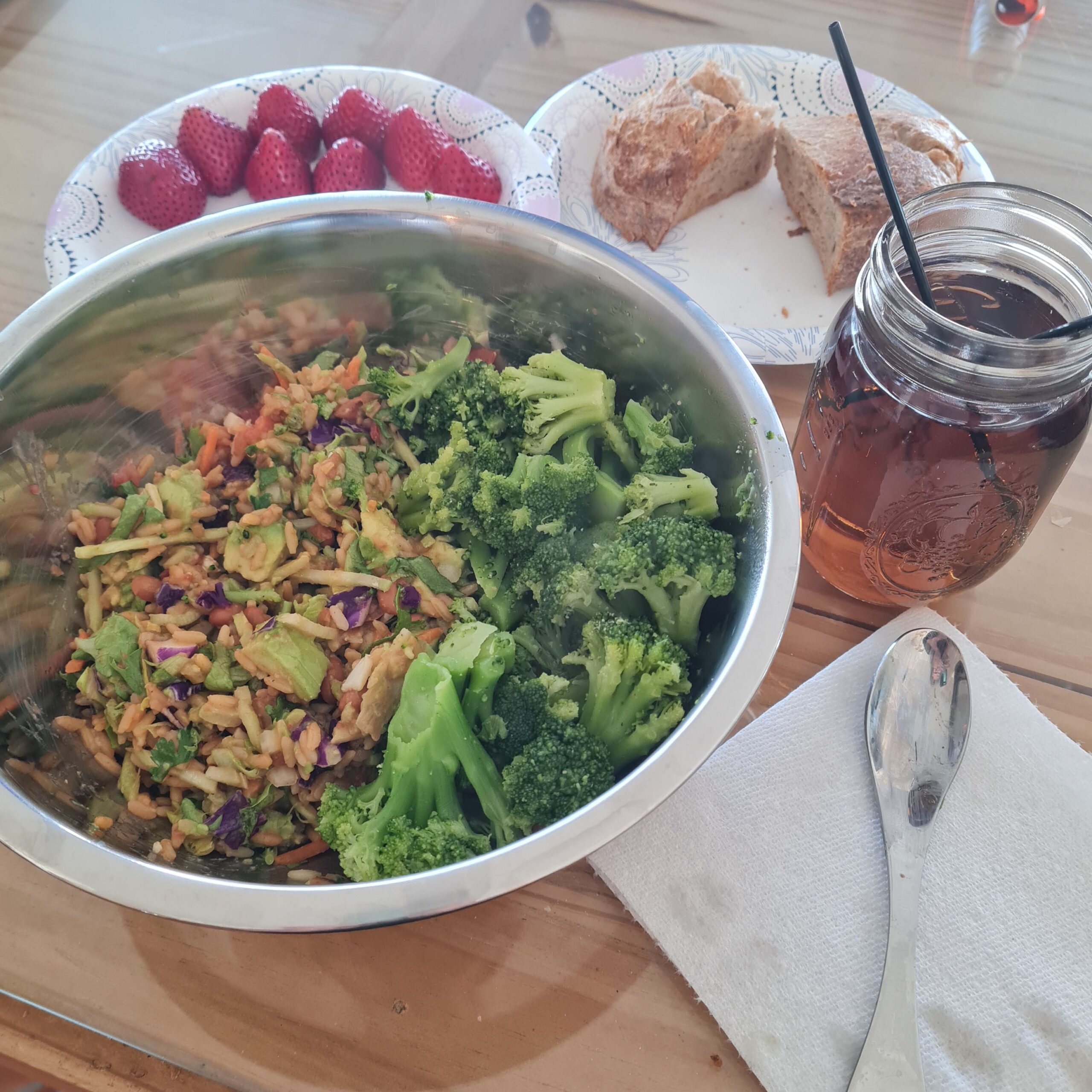 * Mexi-bowl (chopped salad, pinto beans, rice, cilantro, avocado, lemon, salsa)