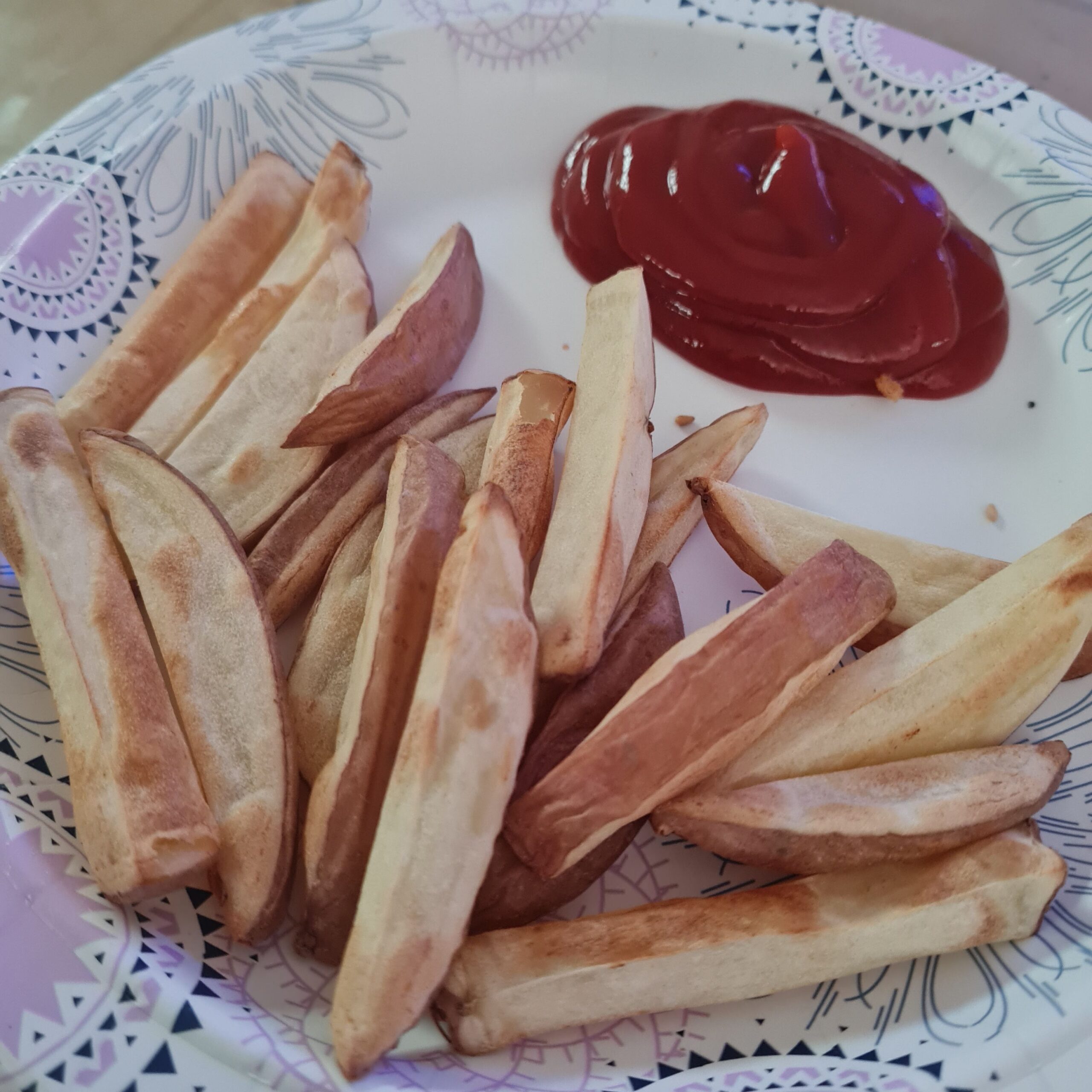 * airfried (oil-free) sliced potato w/ ketchup (no hfcs – high fructose corn syrup)