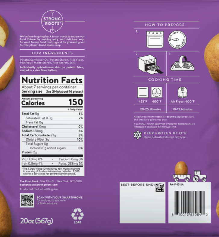 Potato (94%), Sunflower Oil, Potato Starch, Rice Flour, Pea Flour, Maize Starch, Rice Starch, Salt.
