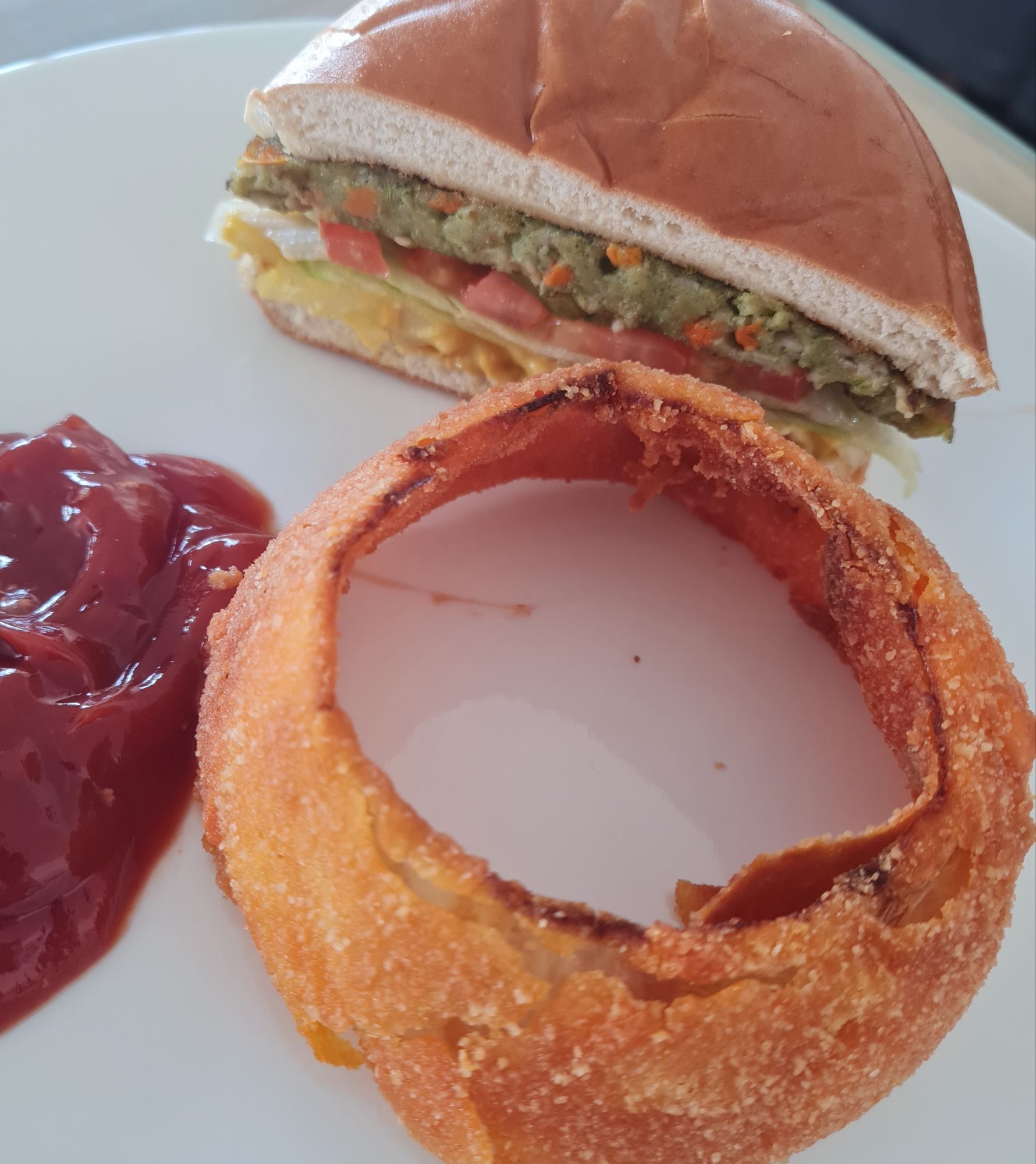 * onion XL-rings w/ natural ketchup & plain sparkling water w/ one shot of soft XL-drink