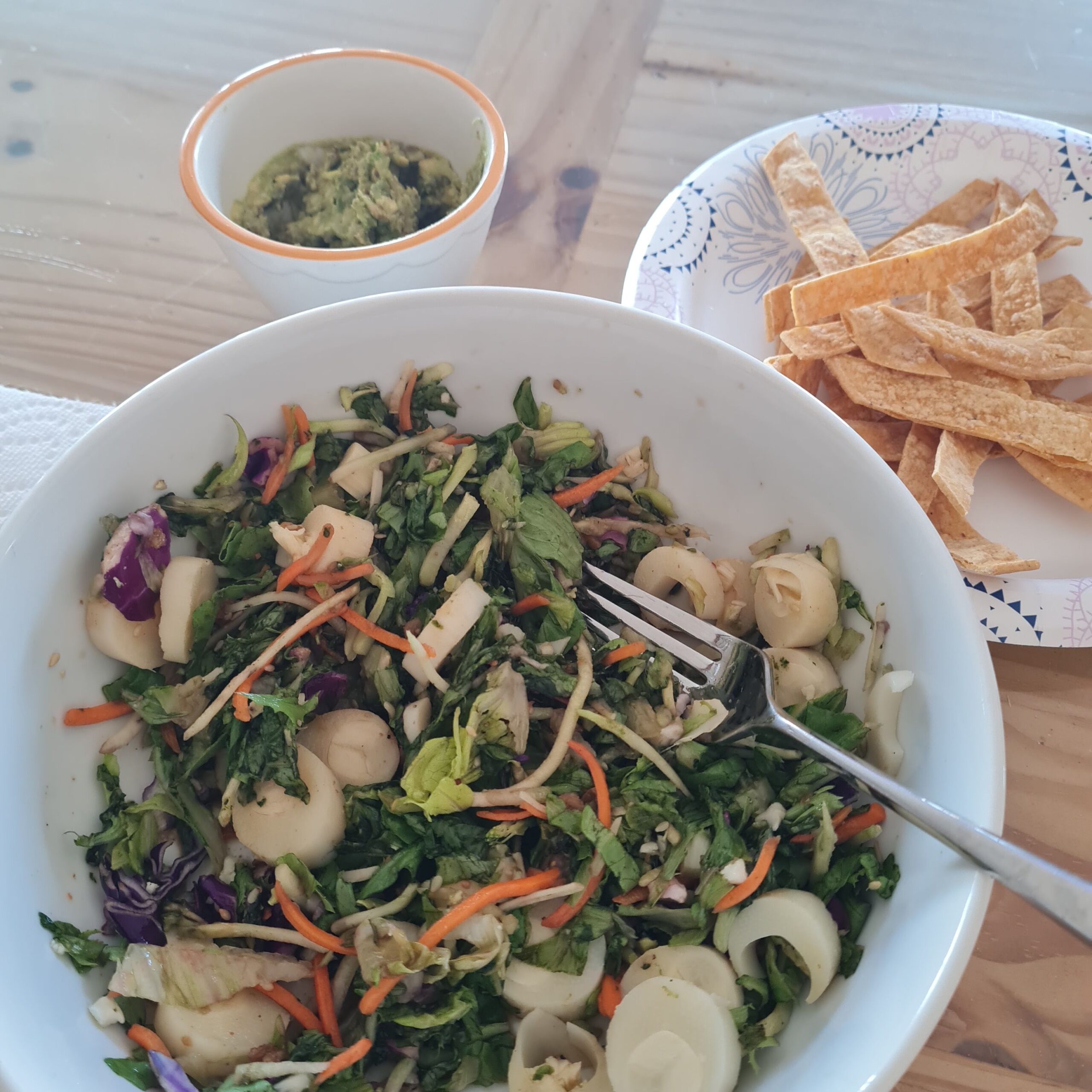 * chopped gorilla salad w/ oilfree soy sauce dressing, airfried corn tortilla strips & avocado