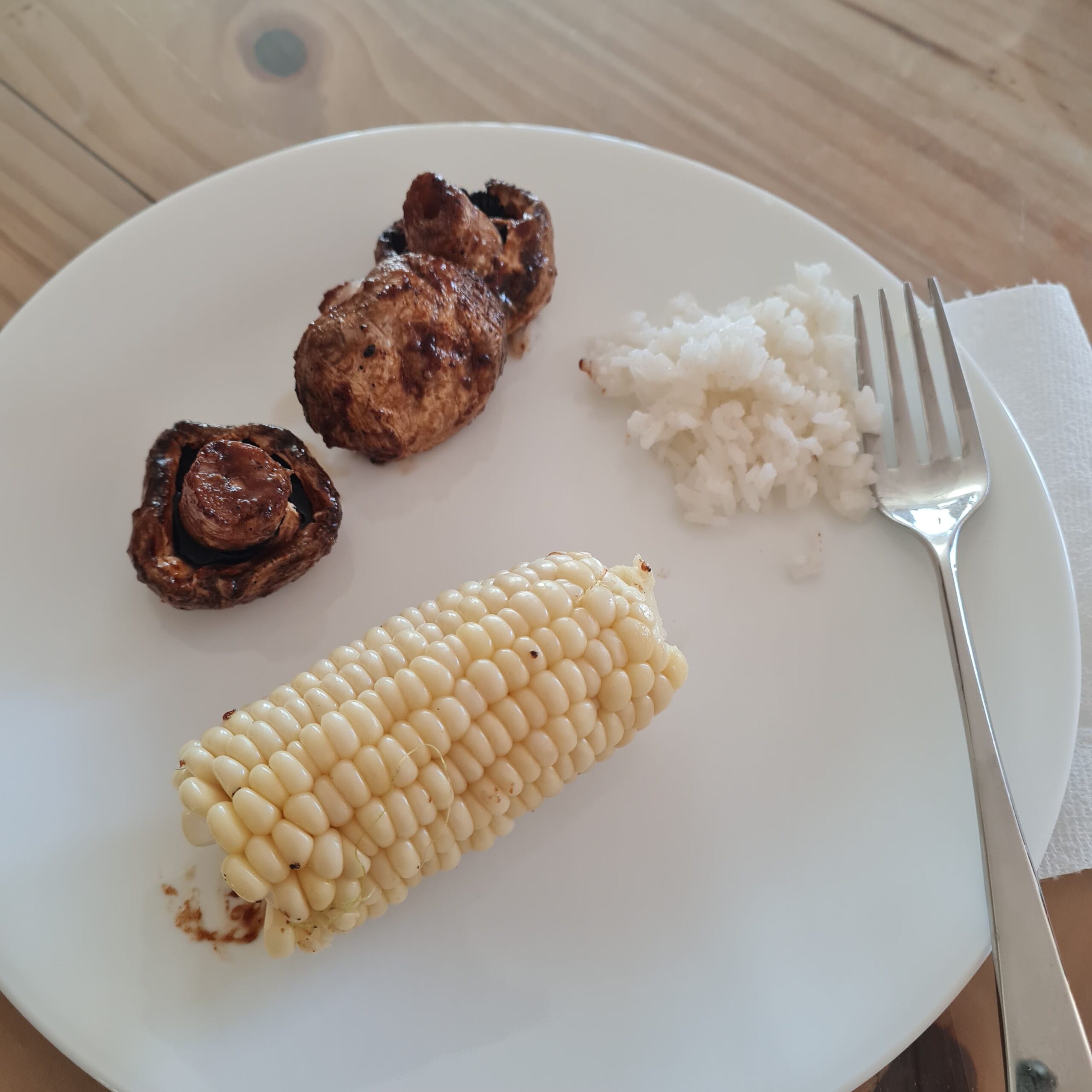 * corn on cob, grilled mushrooms, white rice