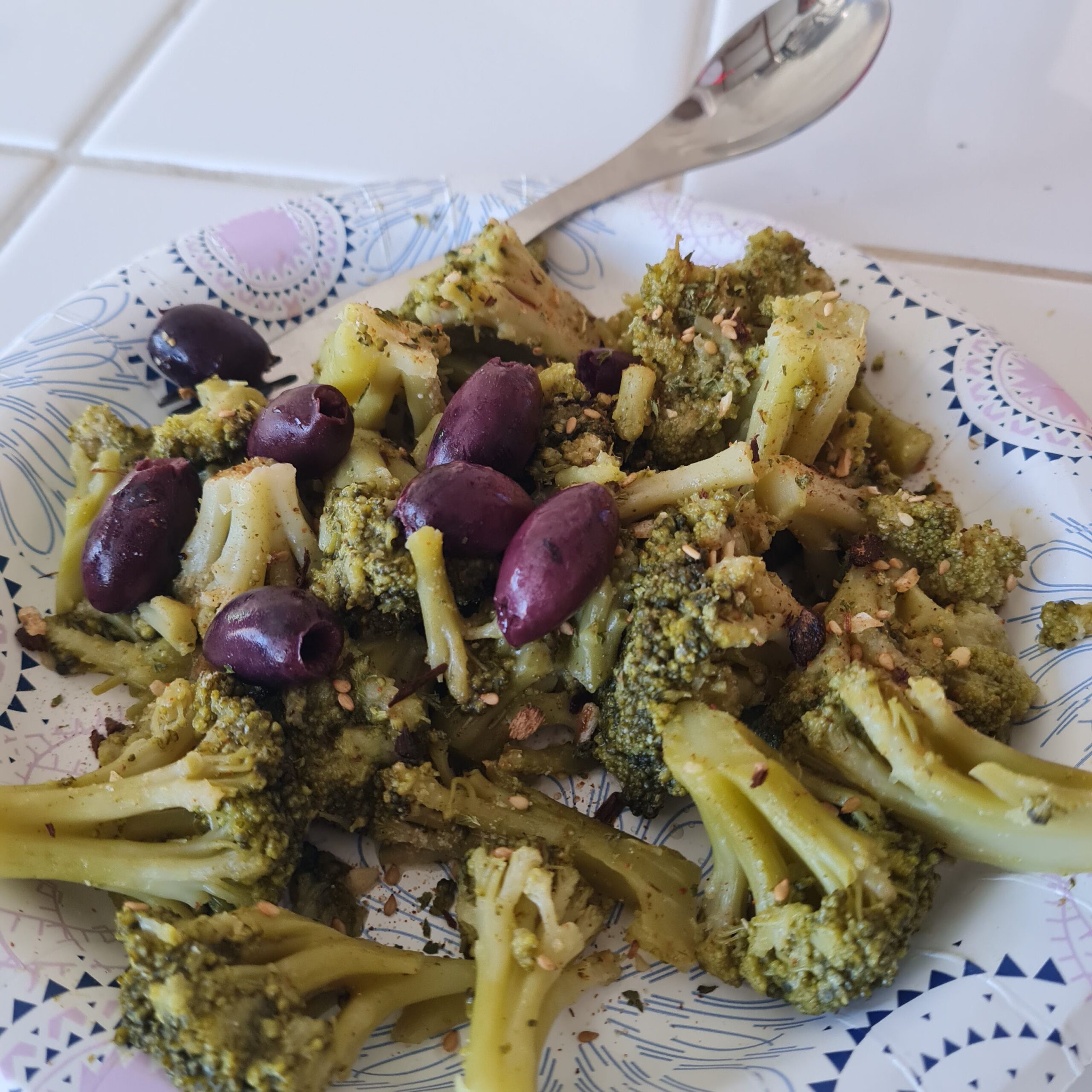 *steamed broccoli w/ ground mustard seed & olives