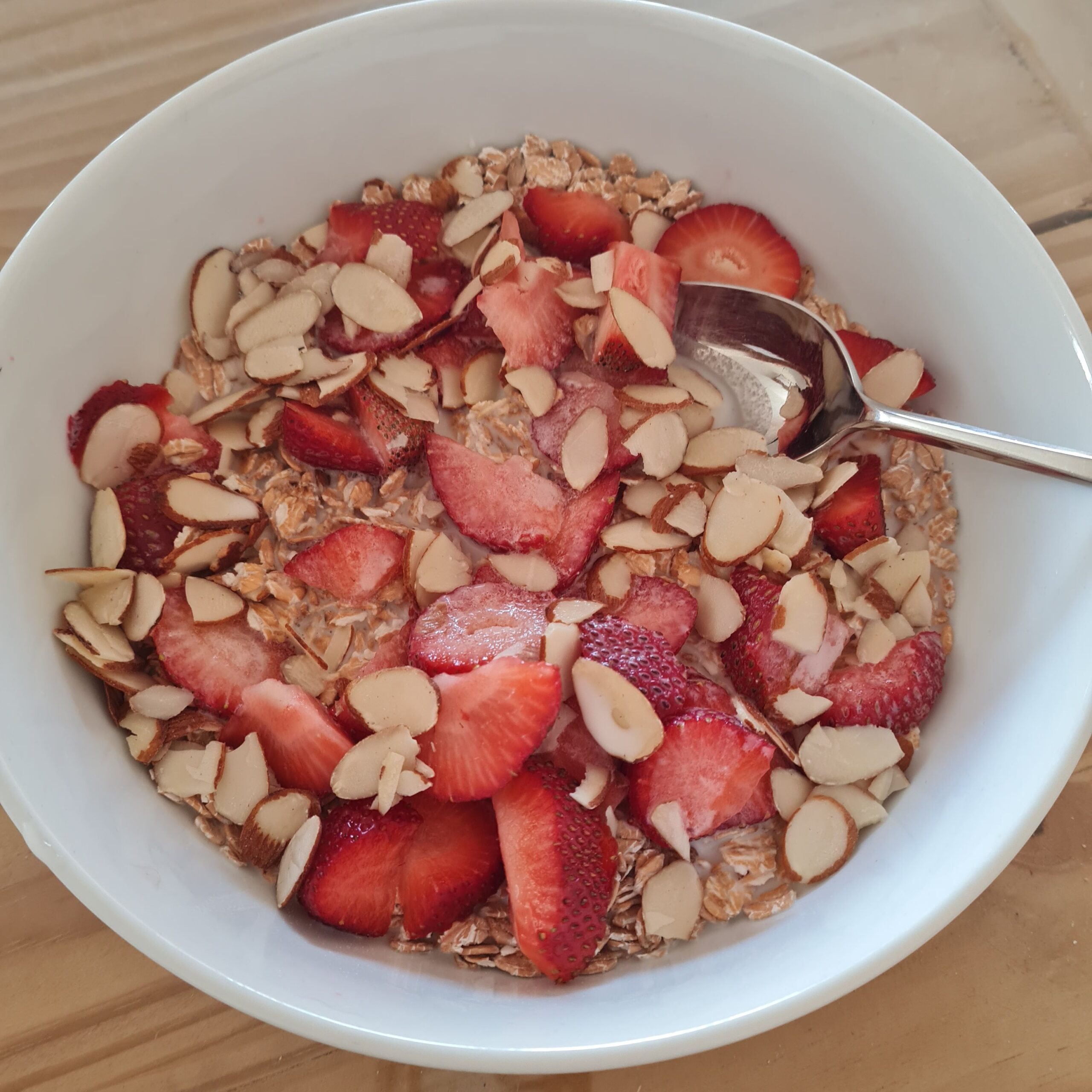 * spelt & oatmeal w/ strawberries & sliced almonds